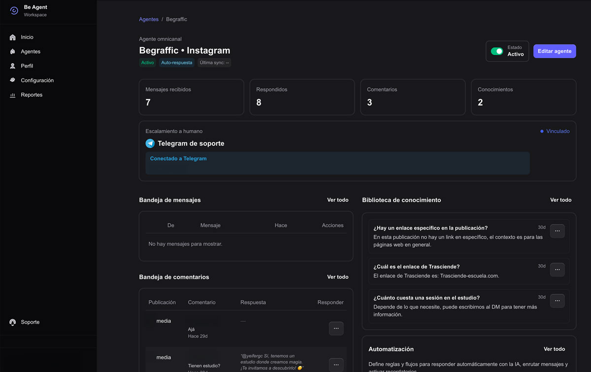 Solución orientada a agentes inteligentes para automatizar tareas clave, asistir procesos operativos y mejorar la velocidad de respuesta en los flujos de negocio.